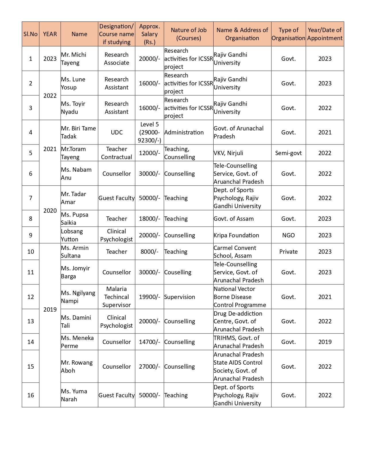 The Department of Psychology was established in the year 2017 with two Assistant Professors. Currently the Department is running with two Assistant Professors and one Guest Assistant Professor. The Department was set up to develop an awareness of the importance of studying human behaviour and the societal relevance of psychology. The Department offers M.A. Psychology which is of four semesters and the curriculum is so designed as to provide strong theoretical, methodological and contemporary knowledge of various areas of Psychology to the students. The purpose is to equip the students with knowledge, skills and values to become effective and competent professional psychologist. During the course, the students are taken for field visit at mental health centres and counselling cells besides interactive classroom teaching and laboratory training. Time to time extended lectures from experts in relevant field is also conducted. This academic training enables the students to work in a broad range of settings such as, medical, organization, counselling centres, NGOs, researchers and academicians.